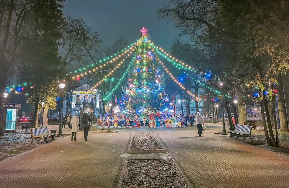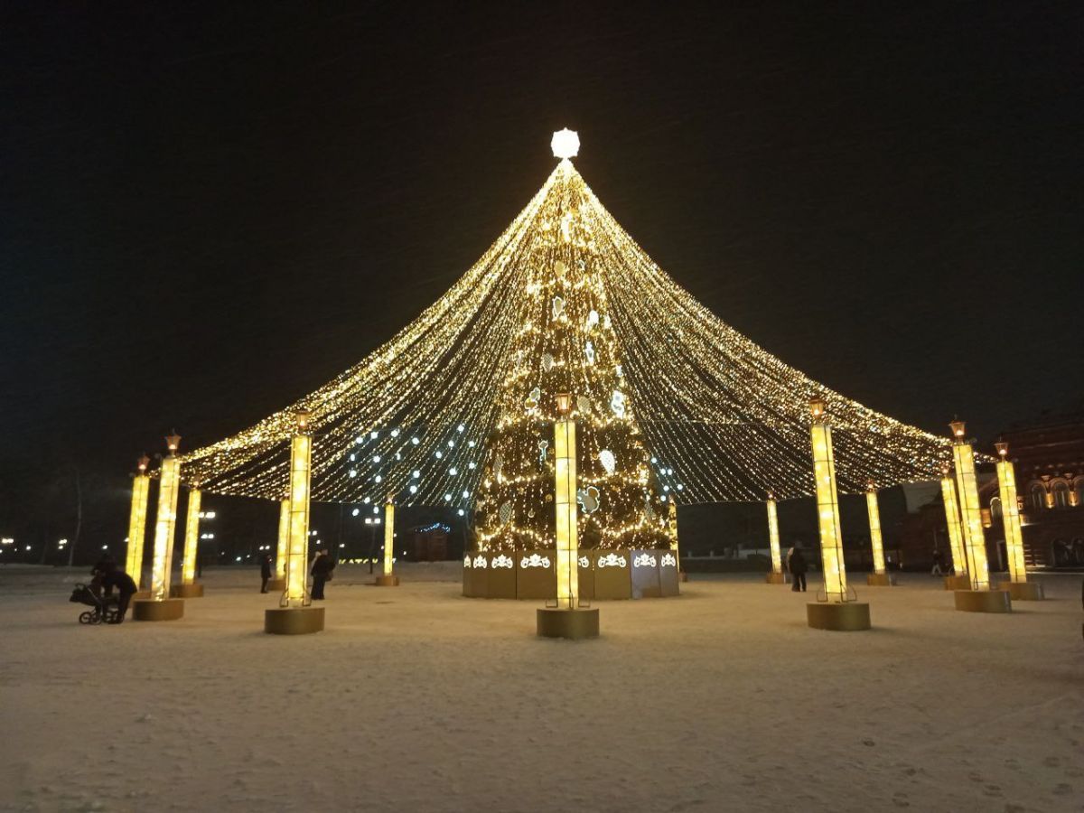 В городе на площади Ленина появилась праздничная ель и украшенные домики ярмарки. Также, жители и гости города, могут полюбоваться фигурами световых оленей и скандальных Снегурочки и Деда Мороза.