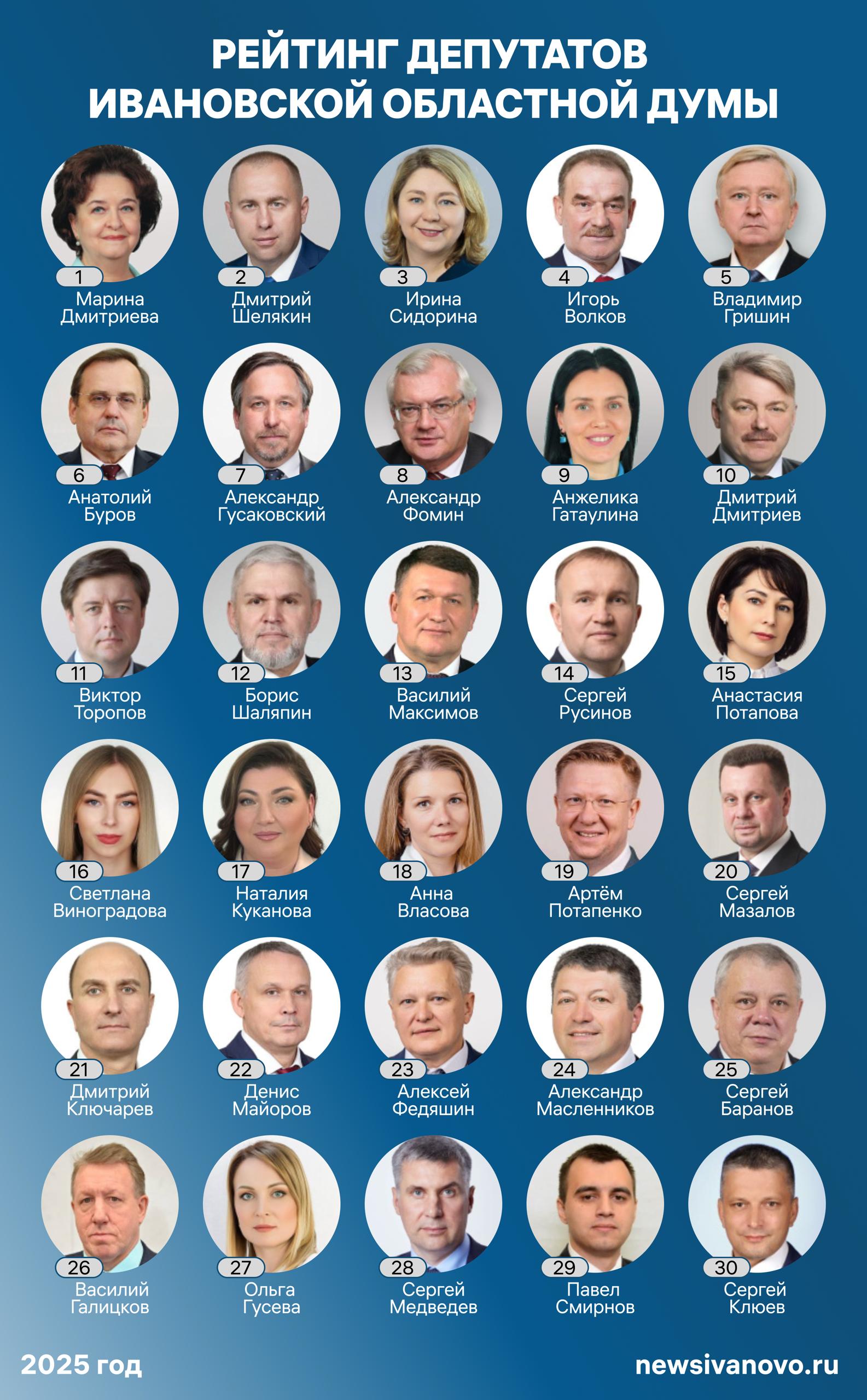 Редакция «Ивановских новостей» подготовила ежегодный рейтинг депутатов Ивановской областной Думы, оценив их работу в 2025 году. Итоговые места распределялись на основе нескольких групп критериев.